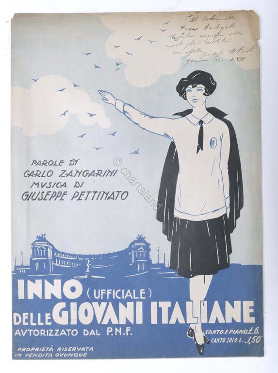 Spartiti - Inno Ufficiale delle Giovani Italiane - Autografo Giuseppe Pettinato