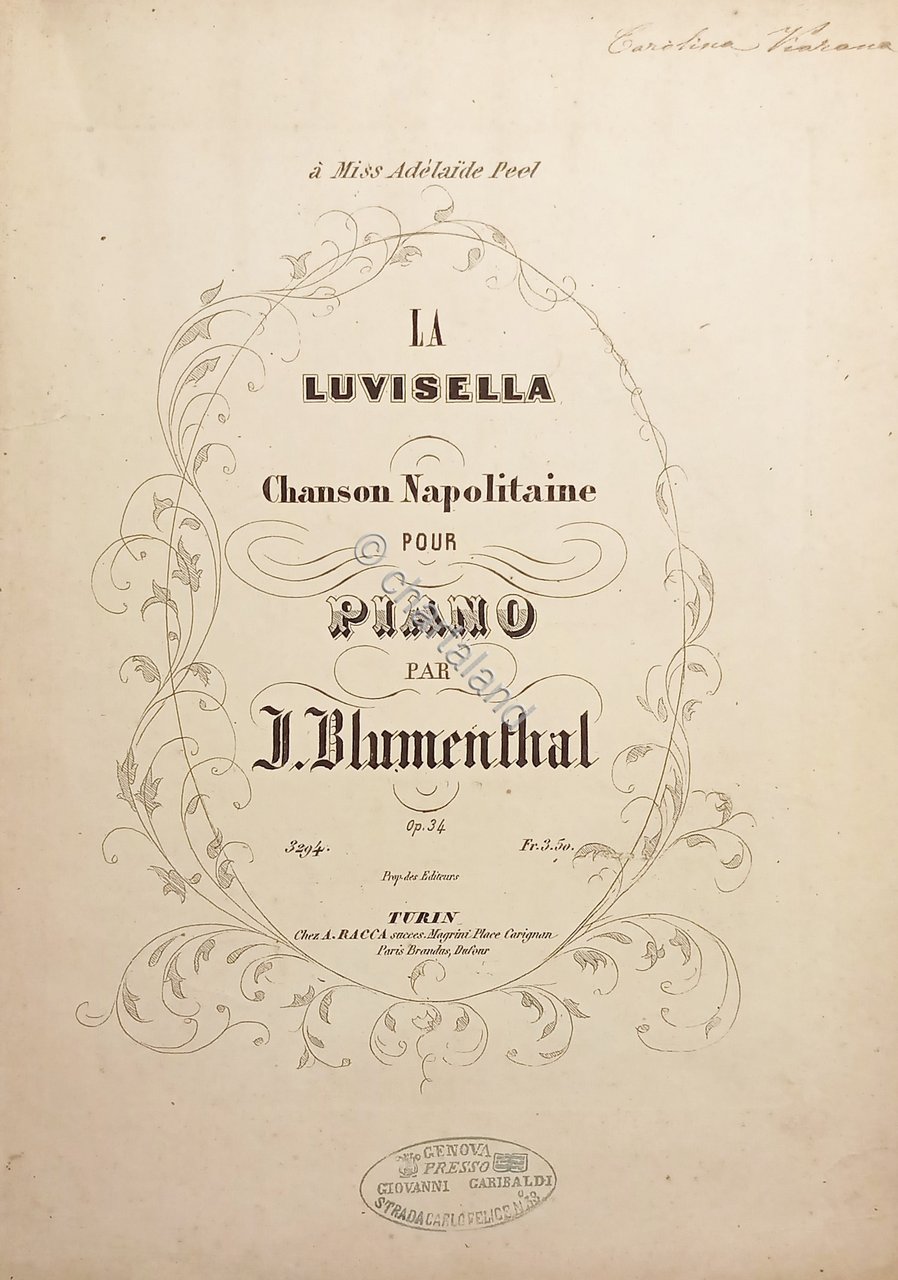 Spartiti - La Luvisella - Chanson Napolitaine pour Piano par J. Blumenthal