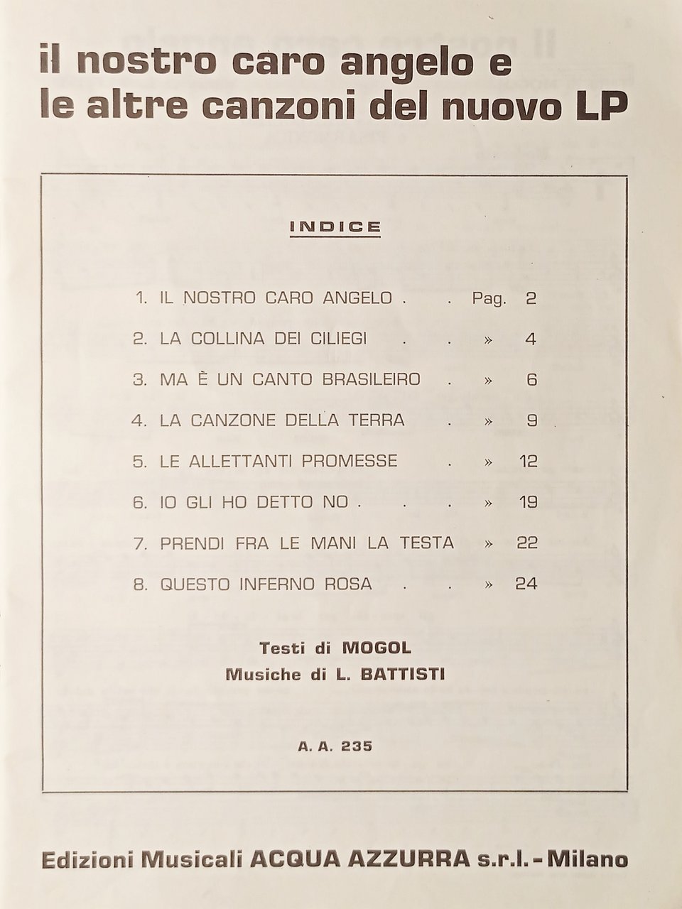 Spartiti - Lucio Battisti - Testi di Mogol - Raccolta - 1973