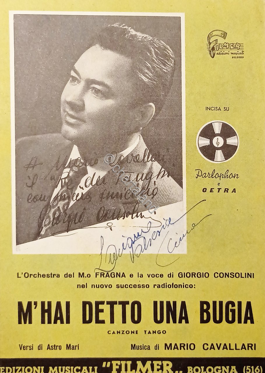 Spartiti - M'hai detto una bugia - Canzone Tango di M. Cavallari - 1957