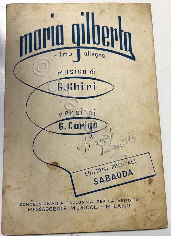 Spartiti - Maria Gilberta - Musica di Chiri - Fisarmonica mandolino anni '60