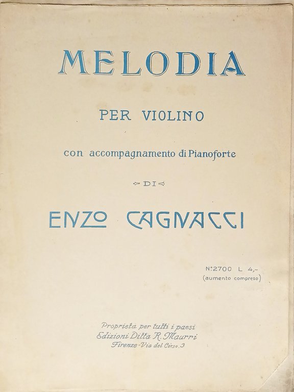 Spartiti - Melodia per Violino con accomp. di Pianoforte di Enzo Cagnacci