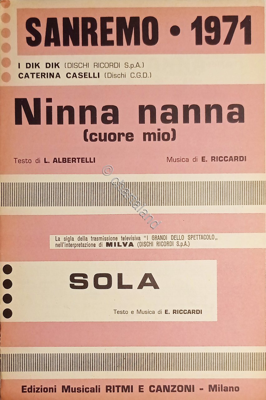 Spartiti - Ninna nanna (Cuore mio) - Sola - E. Riccardi - Sanremo 1971
