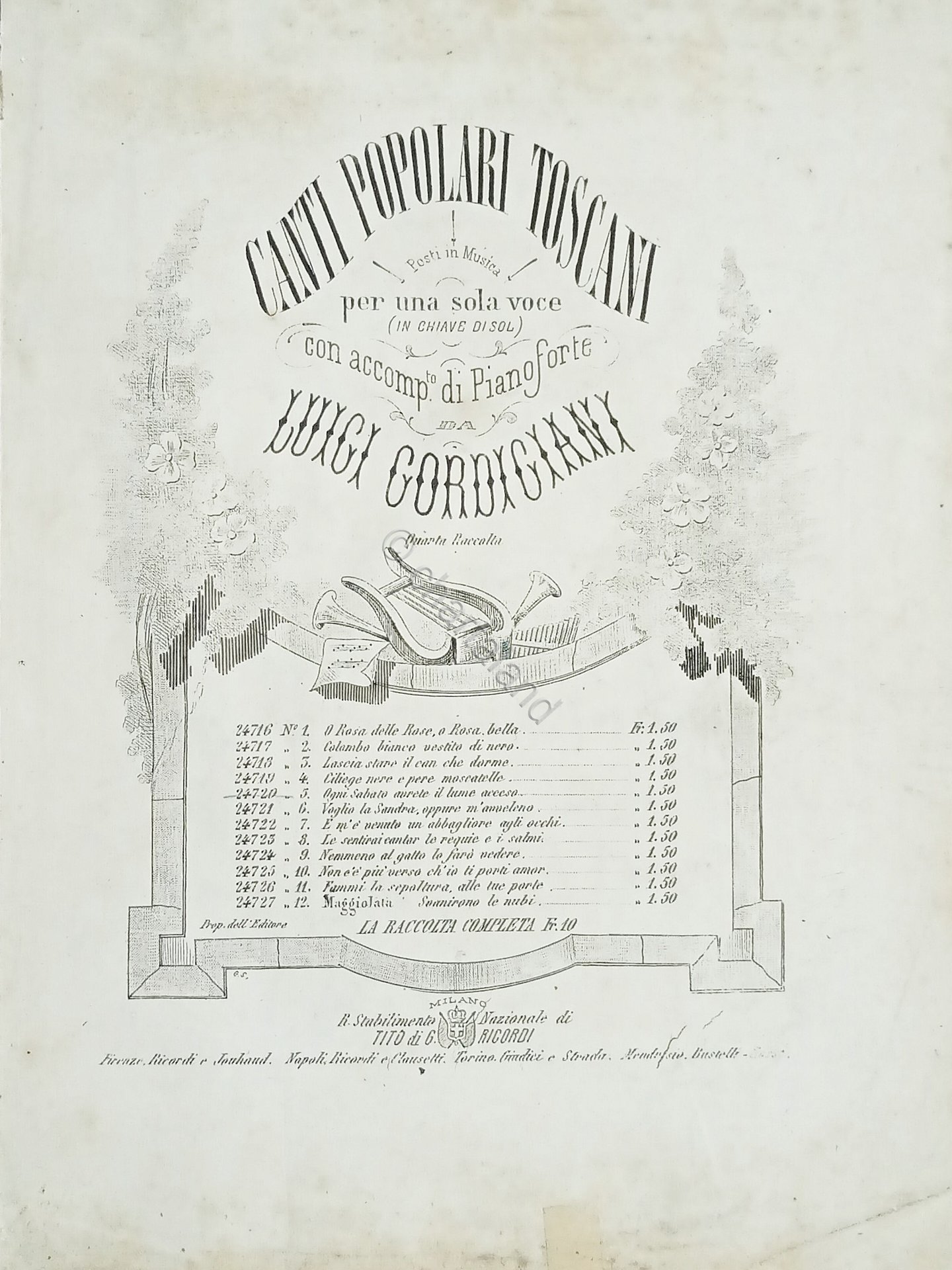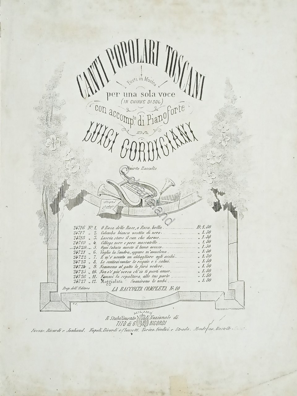 Spartiti - Ogni Sabato avrete il Lume acceso - Canto Toscano di L. Gordigiani