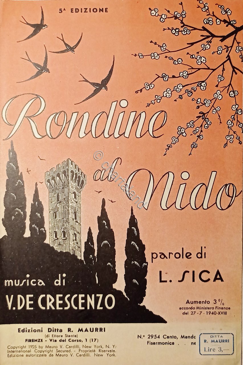 Spartiti - Rondini al Nido di L. Sica e V. De Crescenzo - 1941