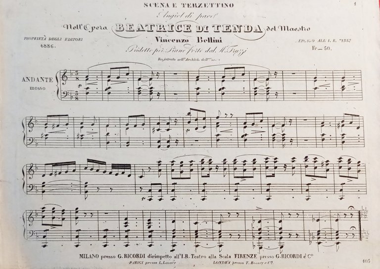 Spartiti - Scena e Terzettino nell'Opera Beatrice di Tenda di V. Bellini - Piano