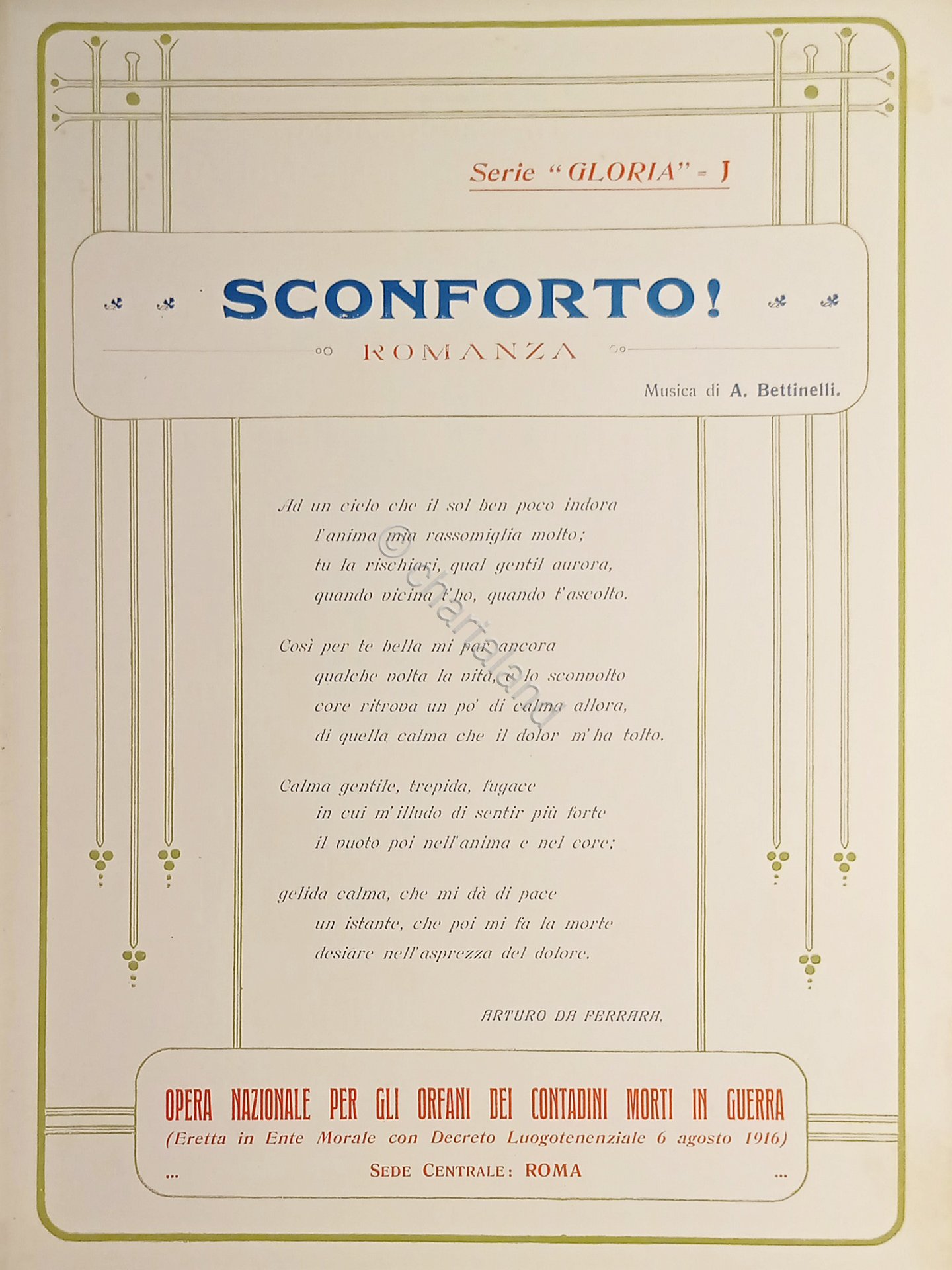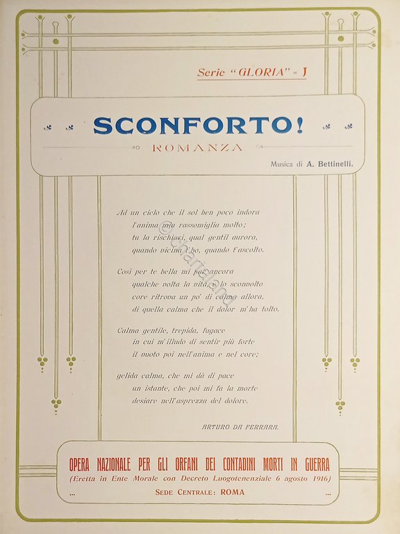 Spartiti - Sconforto! - Romanza per Canto e Piano di A. Bettinelli