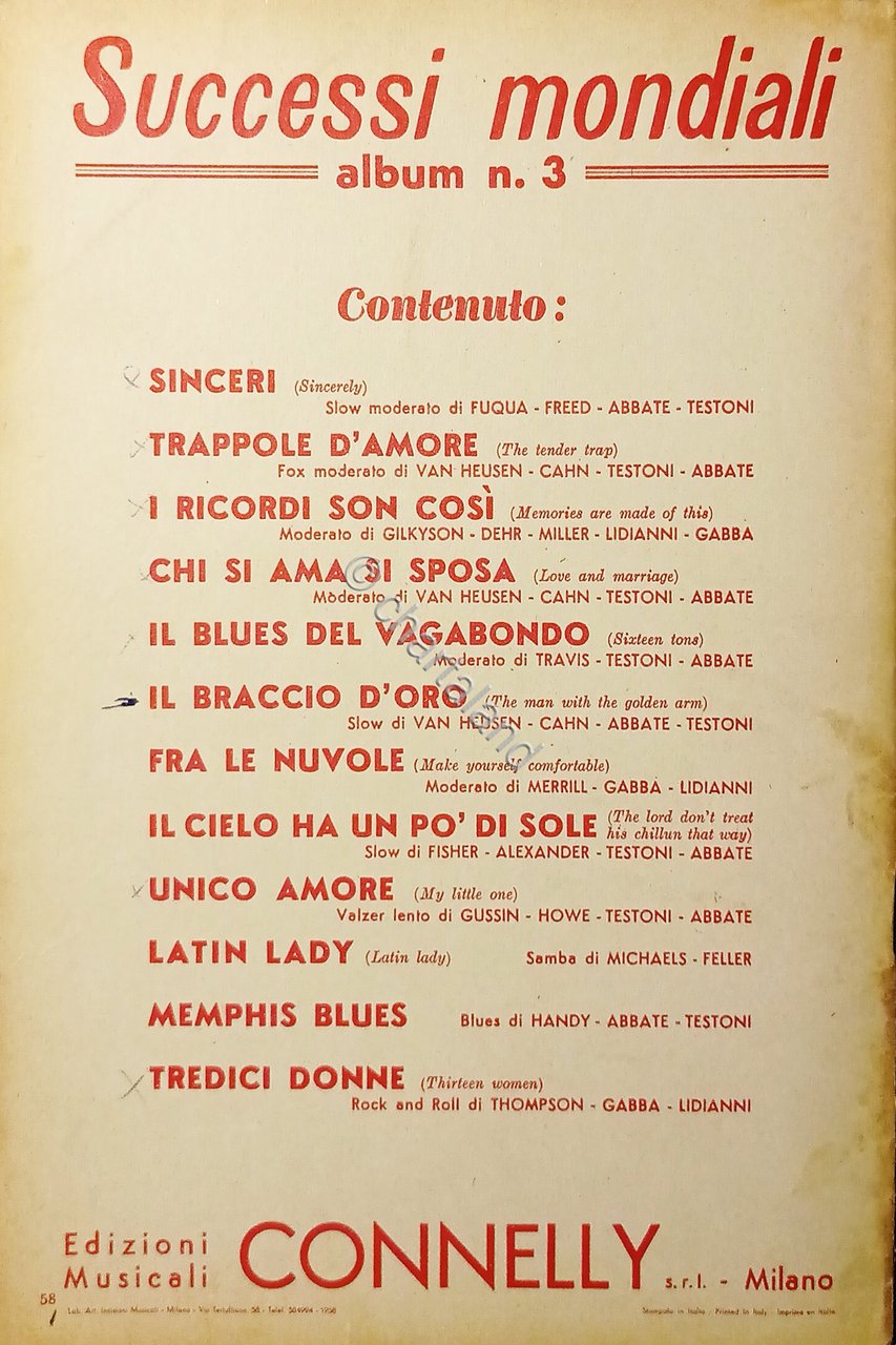 Spartiti - Successi Mondiali - Album N. 3 - 1958
