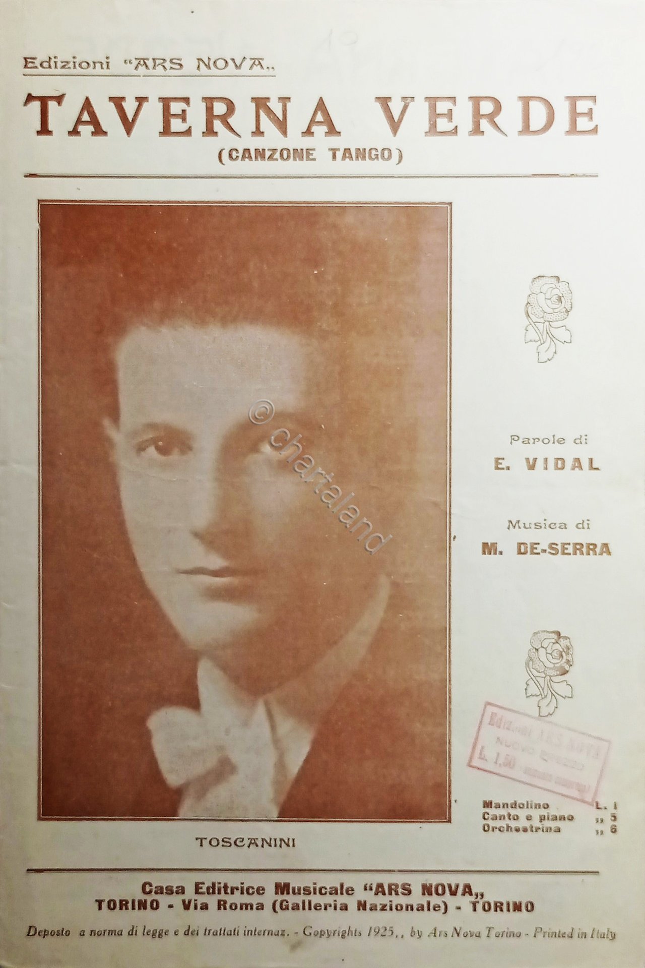 Spartiti - Taverna Verde - Canzone Tango di E. Vidal - Toscanini - 1925