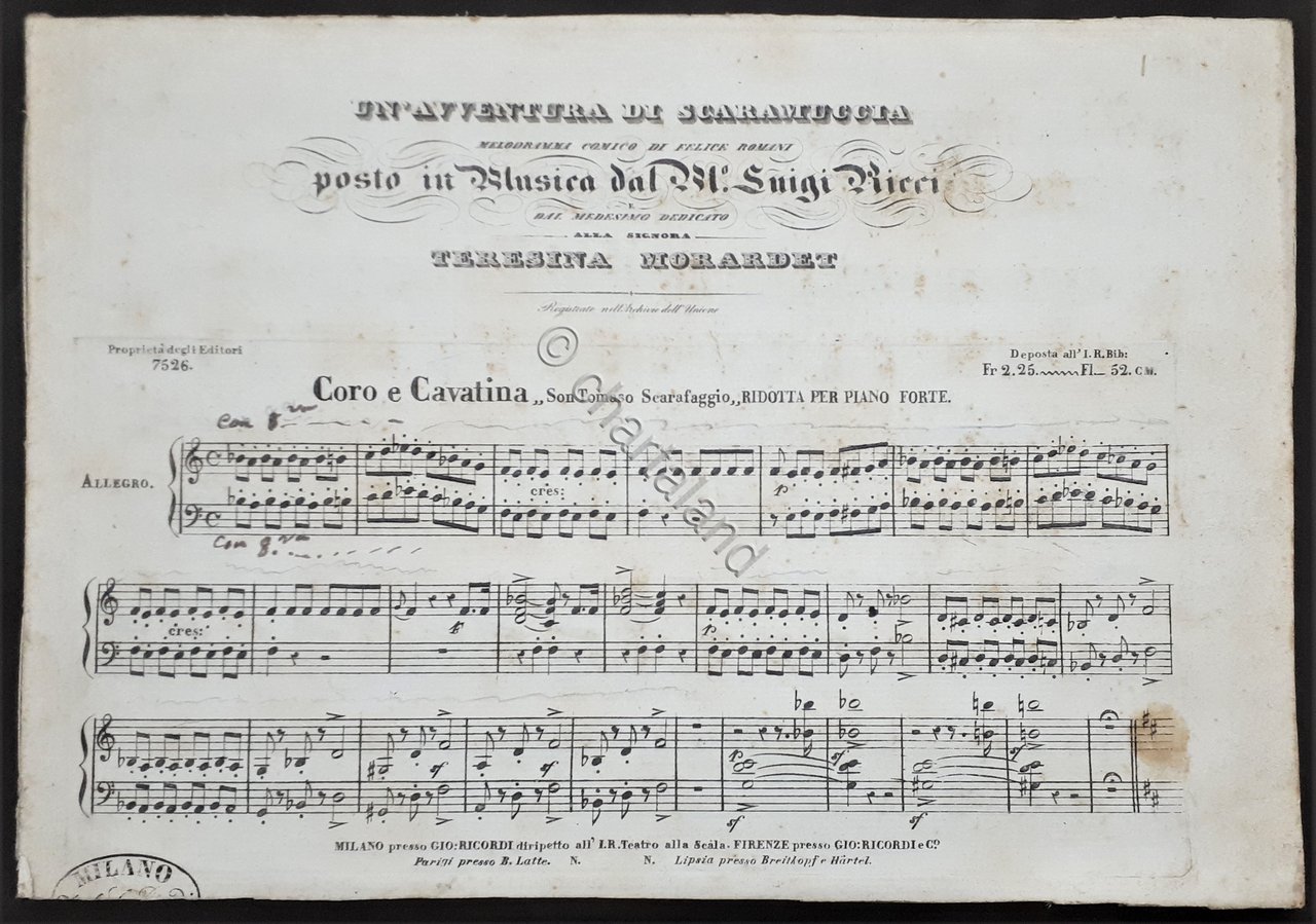 Spartiti - Un'avventura di Scaramuccia - Coro e Cavatina per Piano di L. Ricci