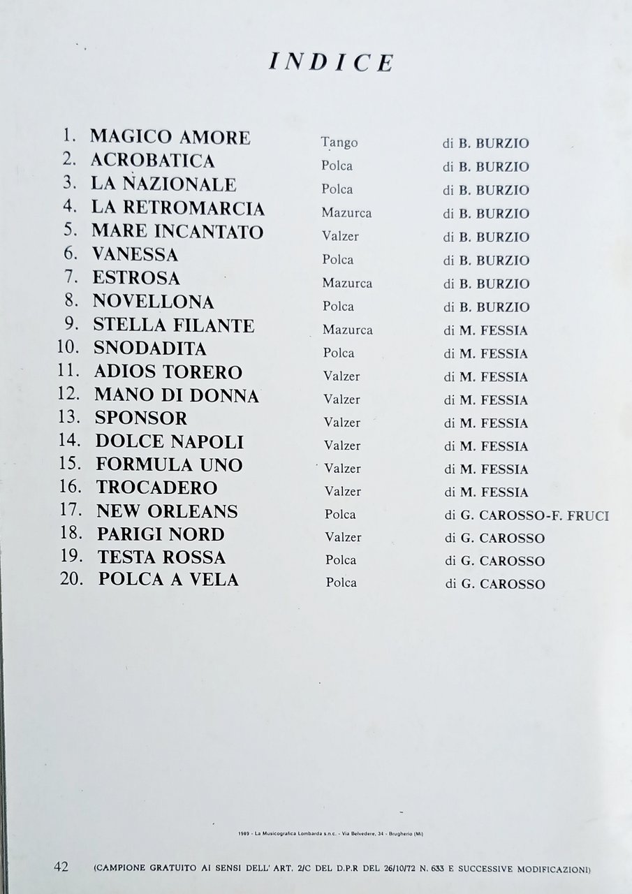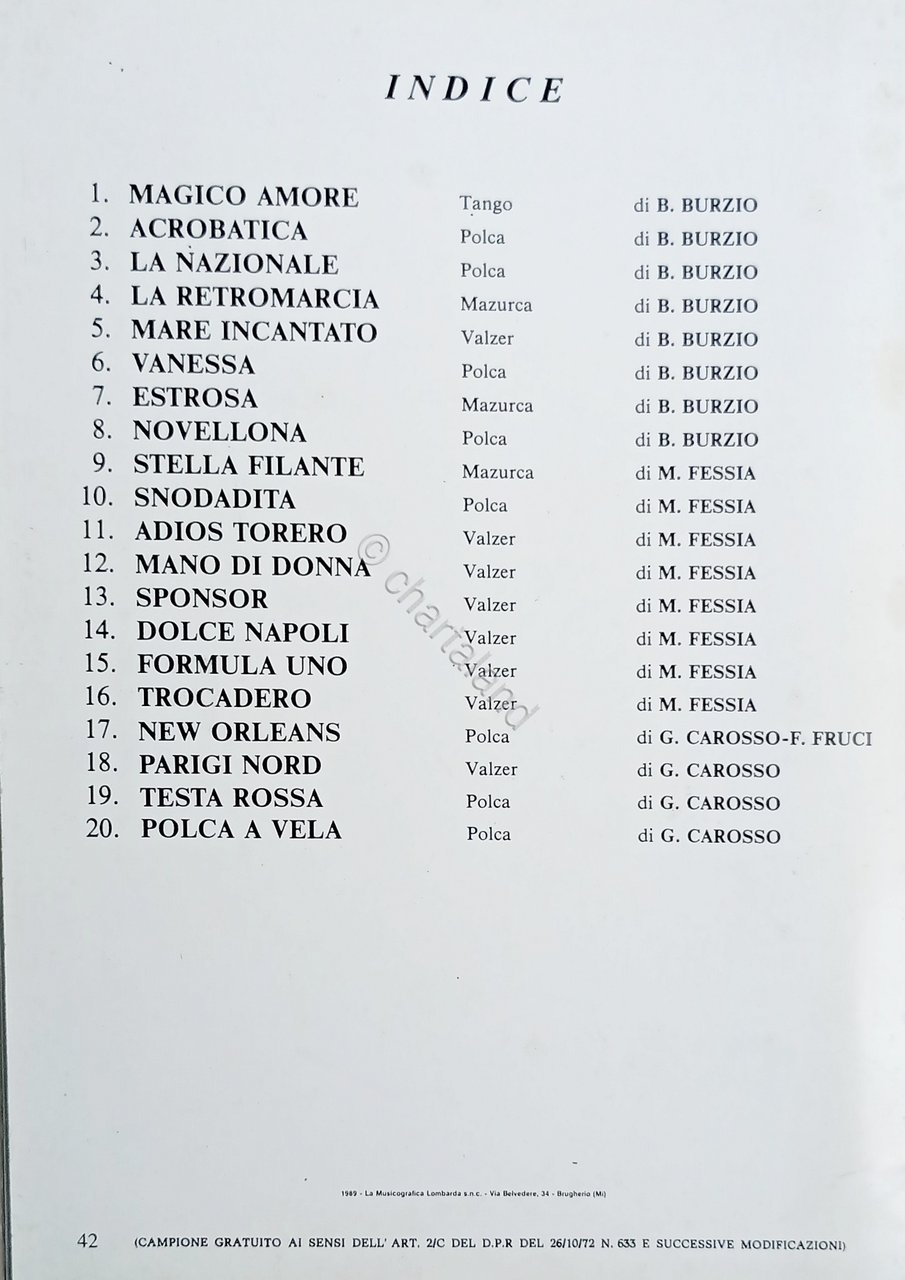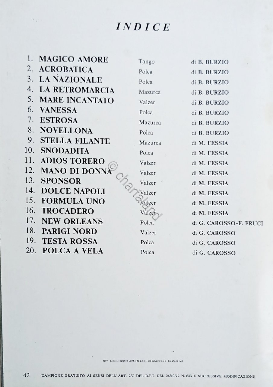 Spartiti - Una Raccolta di 20 Successi - Agli amanti della Fisarmonica - 1988