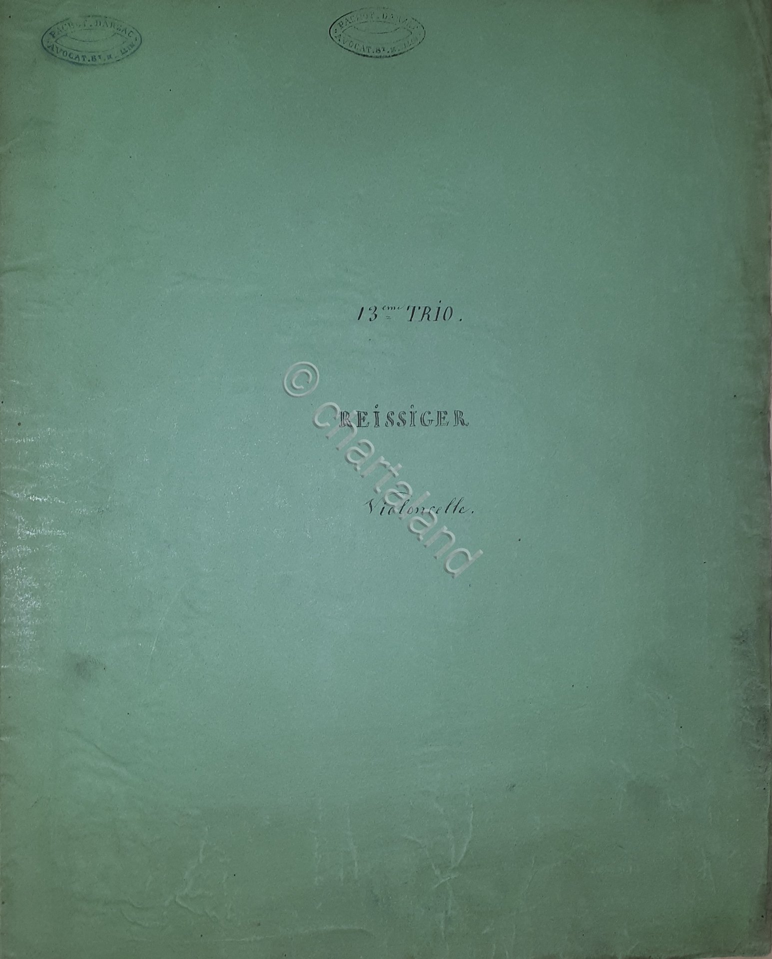 Spartiti Violoncelle - 13^Trio pour Piano Violon Violoncelle Reissiger Fine '800
