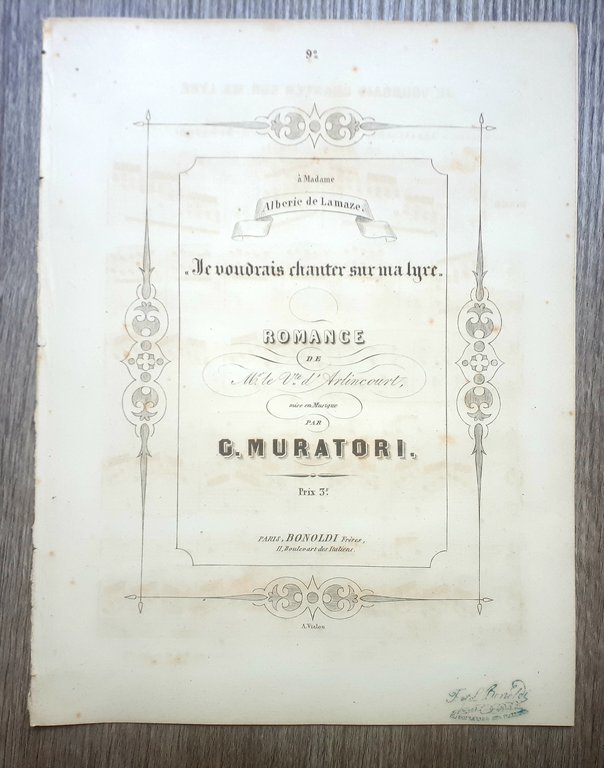 Spartito - Je voudrais chanter sur ma lyre - Romance par G. Muratori