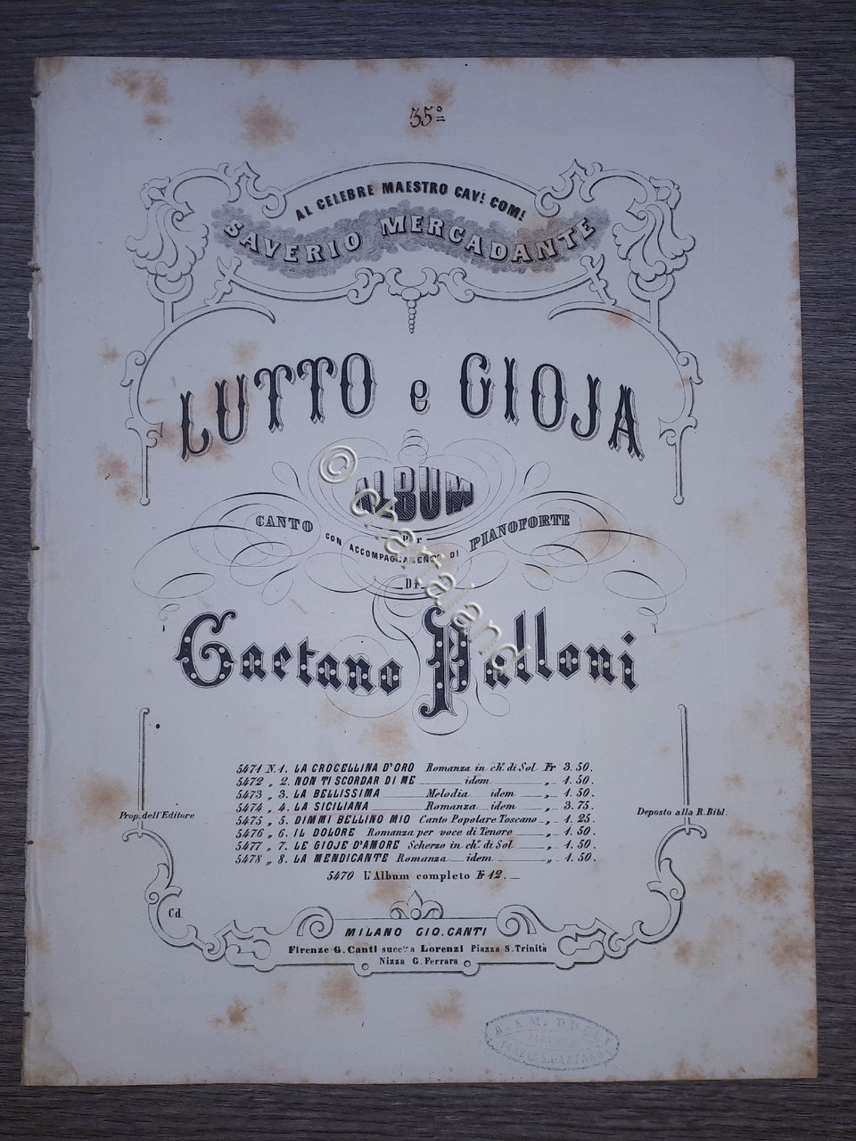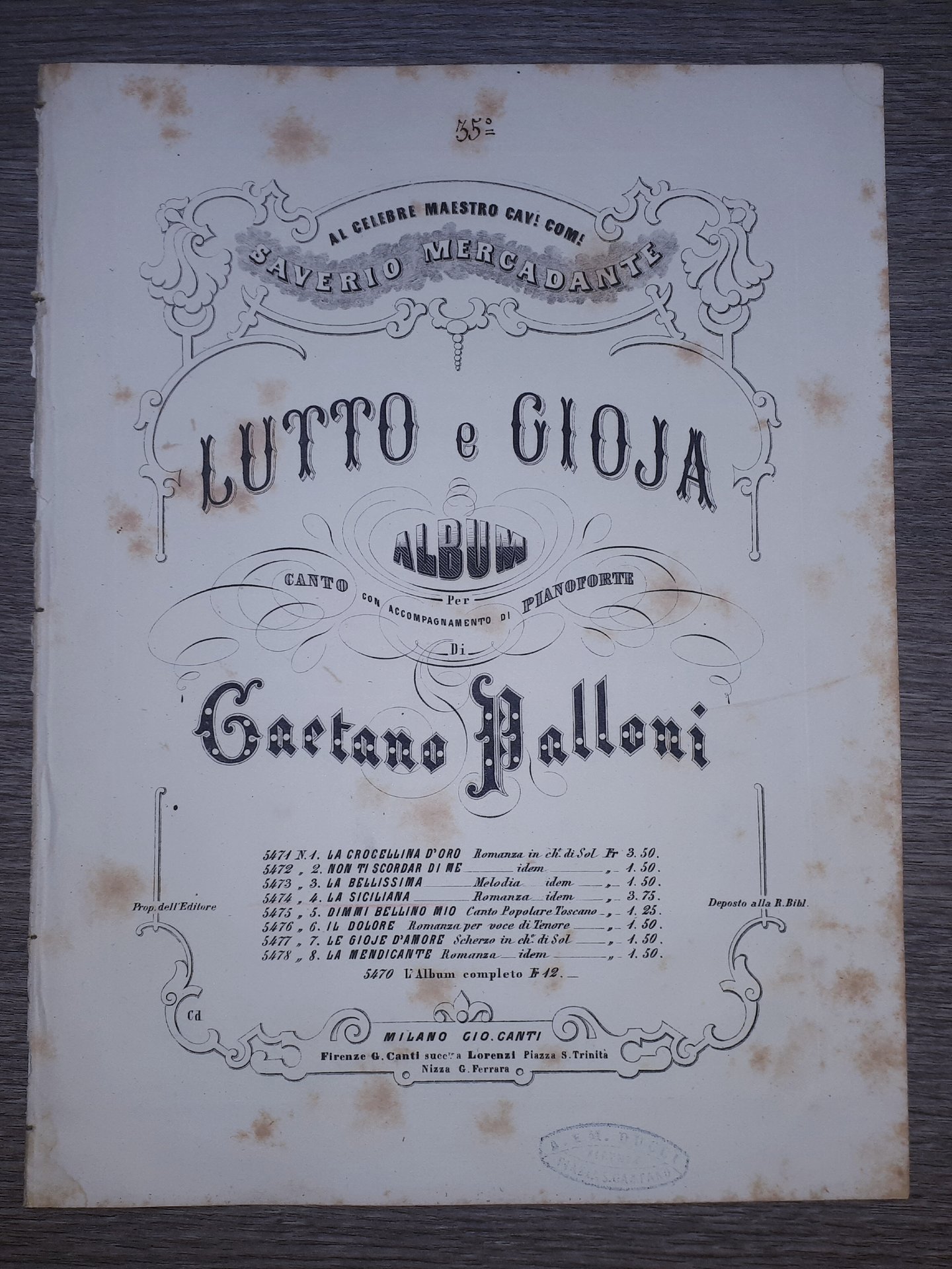 Spartito - Lutto e Gioia - Album per Pianoforte e Canto - Gaetano Palloni