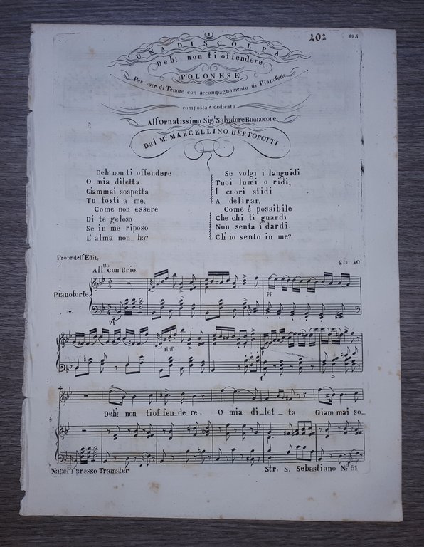 Spartito - Una Discolpa - Deh! Non ti offendere - Polonese - M. Bertorotti
