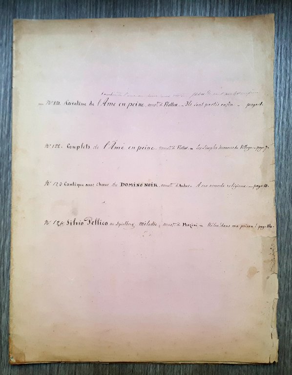 Spartito manoscritto - Cavantine e Cuoplets di Flottow - Ame en peine secolo XIX