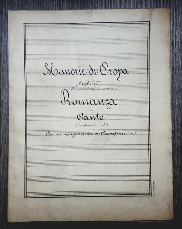 Spartito - Memorie di Oropa - Romanza per Canto con accomp. di Pianoforte 1863 - pp. 15 Copertina morbida Condizioni buone come da foto