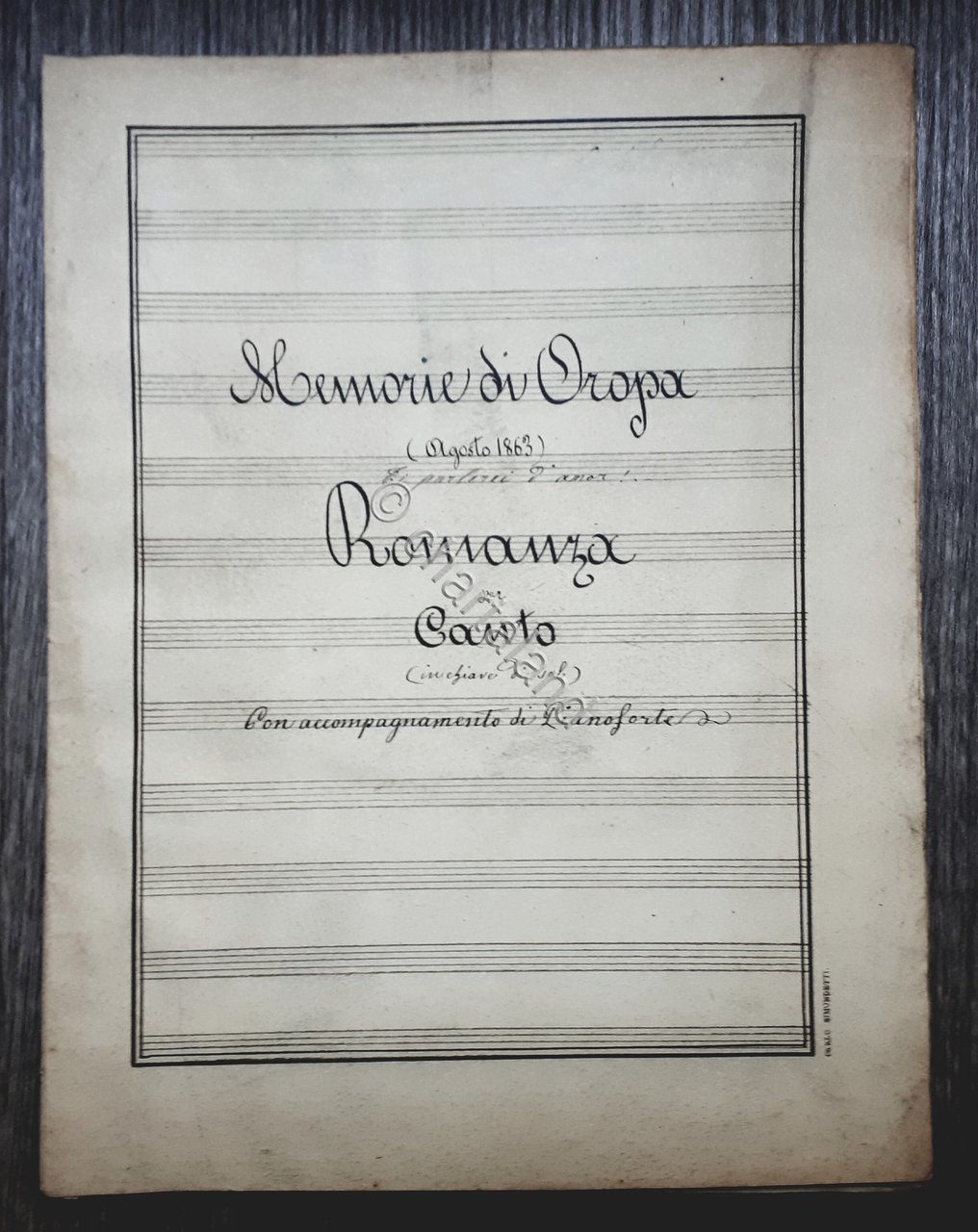 Spartito manoscritto - Memorie di Oropa - Romanza per Canto - Pianoforte - 1863