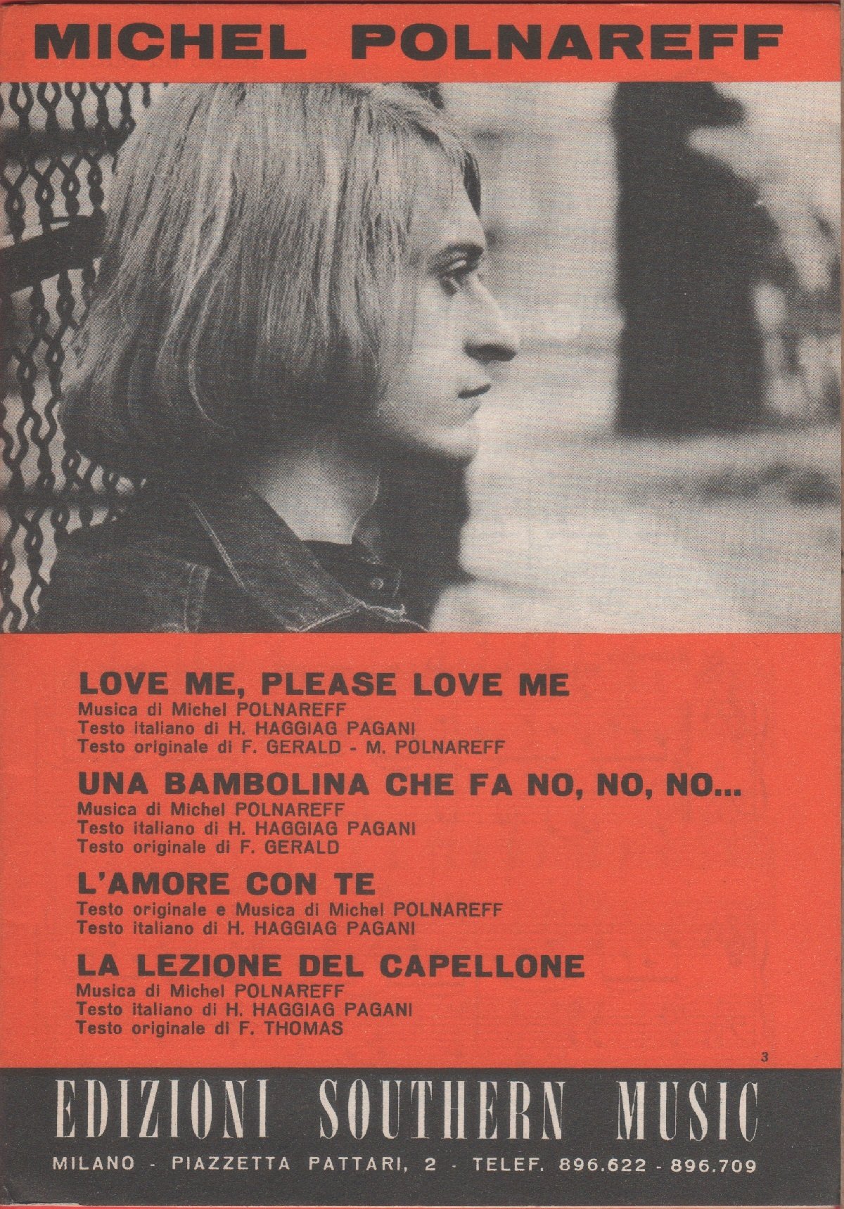 Love me, please love me. Testo originale F. Gerald- M. Polnareff, testo italiano H. Haggiag Pagani, Musica M. Polnareff