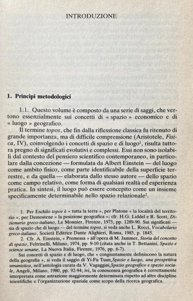 Il cammino del pensiero geografico ed economico giunge - nella fase attuale - ad un punto cruciale, in cui la considerazione di un presente nutrito dal passato si apre a quella di un futuro incerto, la conoscenza e la descrizione si volgono alla previsione e alla pianificazione. A profonde diversità territoriali si sovrappongono le mobili frontiere del progresso tecnico, nelle funzioni dei movimenti interferiscono quelle crescenti delle comunicazioni; a «spazi» sempre più vasti e complessi corrispondono molteplici, che ne rappresentano radici ed espressioni.