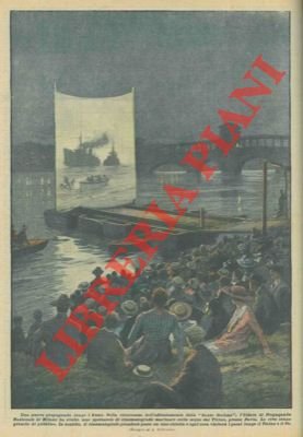Spettacolo cinematografico sulle acque del Ticino, su una chiatta.