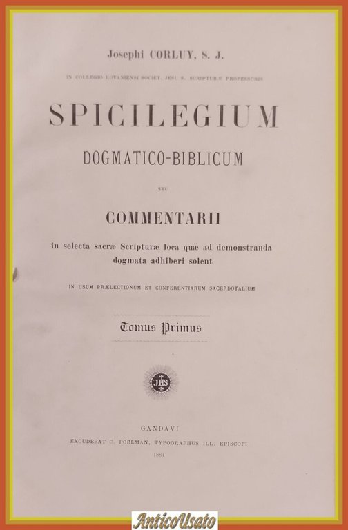 SPICILEGIUM DOGMATICO BIBLICUM di Josephi Corluy Volume 1 1884 Libro commentarii