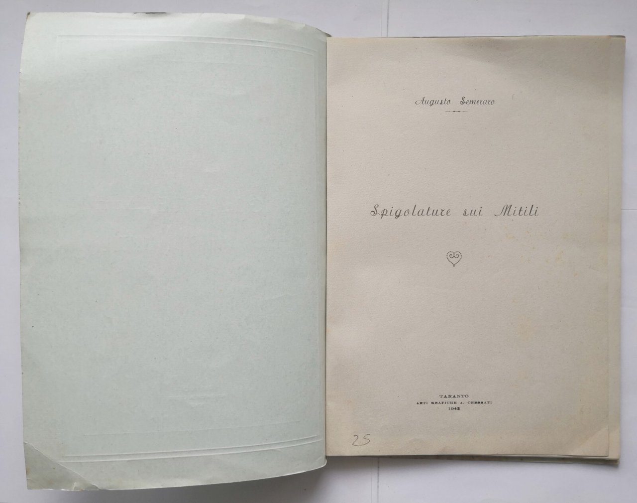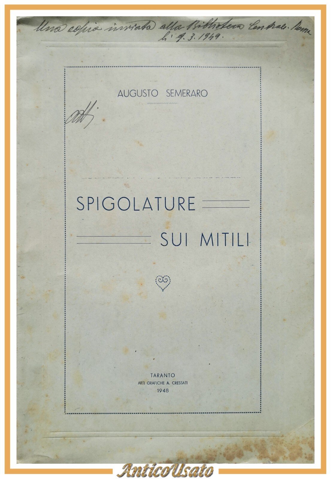 SPIGOLATURE SUI MITILI di Augusto Semeraro 1948 Cressati Taranto Libro Cozze