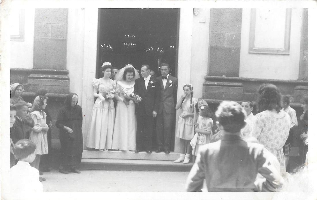 Sposi all'uscita della chiesa B. Fotografo Bertolini. Noceto (PR)