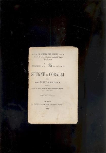 IN 16°,pp.40 + 1 TAV. f.t.+ v.r. ALL'ANTIPORTA, RAFFIGURANTE SPUGNE E CORALLI.<BR>E' IL VOL. n°2 - SERIE II DELLA SCIENZA DEL POPOLO. LETTURA DEL PROF. PIETRO MARCHI,<BR>TENUTA NEL REGIO MUSEO DI STORIA NATURALE IN FIRENZE IL 17 MARZO 1870.<BR>OTTIMA CONSERVAZIONE. ID 1240