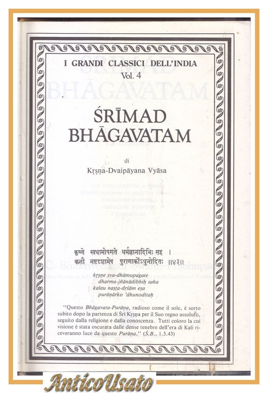 Edizioni Bhaktivedanda, Classici dell'India 1981. L, 1063 pagine, illustrazioni a colori fuori testo. Elegante copertina editoriale in finta pelle con fregi e scritte dorati al piatto e al dorso. stato di conservazione: molto buono (pagine normalmente ingiallite)