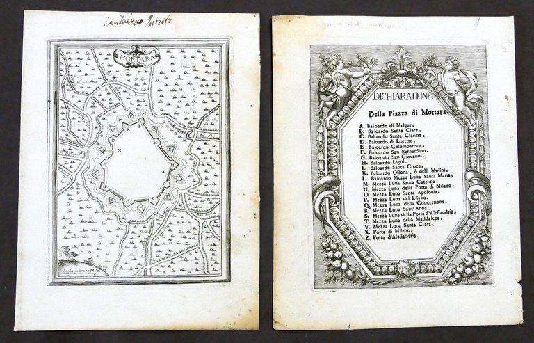 Stampa fortificazioni - Pianta città di Mortara - G.B. Sesti - 1718 - RARA