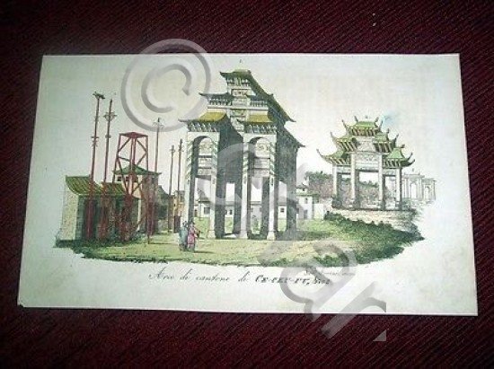 *** Stampa / incisione d' epoca Costumi e Storia dell' Asia - Arco di cantone di Ce-Ceu-Fu ( incisore A. Bernieri ) - tavola estratta dal volume, databile 1800 ca. Dimensioni stampa cm. 13,5 x 22,2 circa Per appassionati, studiosi e collezionisti