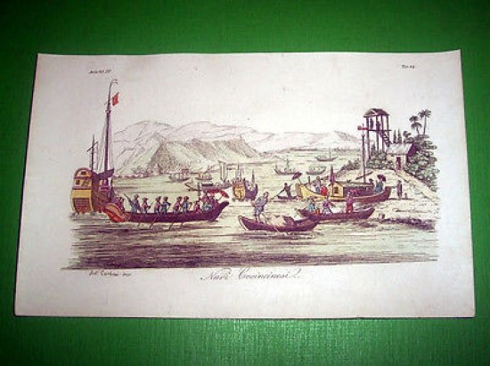 Stampa Incisione Costumi Asia - Navi Cocincinesi ( incisore Carboni ) 1800