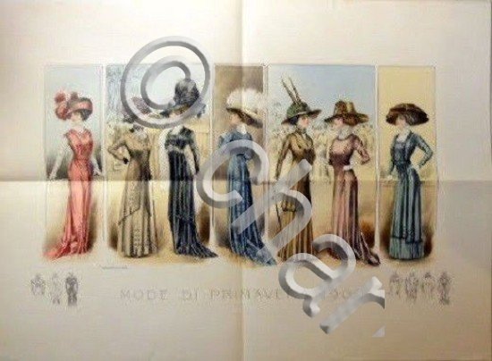 *** 18 - Stampa Moda - Litografia Figurino - Mode di Primavera - 1909 - Schweizer & Co. Fornitori Seterie. Per appassionati e collezionisti