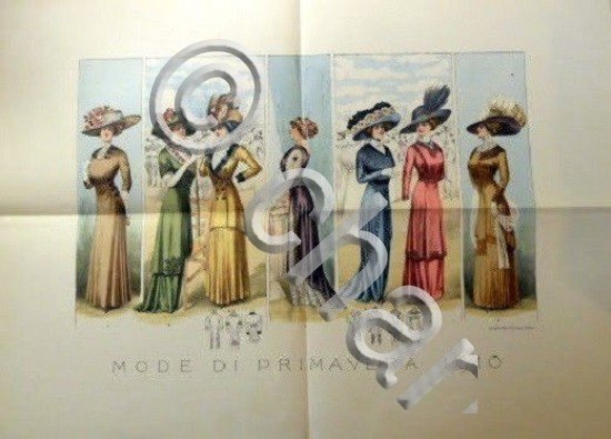 *** 23 - Moda - Litografia Figurino - Mode di Primavera 1910 - Schweizer & Co. , Esportazione Seterie. Per appassionati e collezionisti