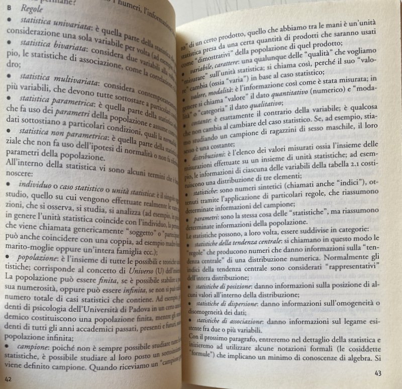 Introduzione/Scala nominale/Scala ordinale/Scala intervallo-a rapporto/Riepilogo sui quantili/Riepilogo sulle statistiche/Significanza delle statistiche/Per riassumere