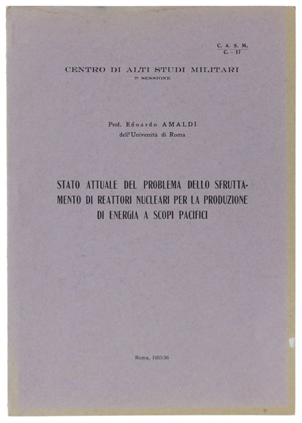 STATO ATTUALE DEL PROBLEMA DELLO SFRUTTAMENTO DI REATTOLI NUCLEARI PER LA PRODUZIONE DI ENERGIA A SCOPI PACIFICI.