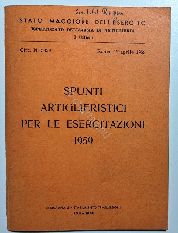 Stato Maggiore Esercito N. 5859 Spunti Artiglieristici per le Esercitazioni 1959