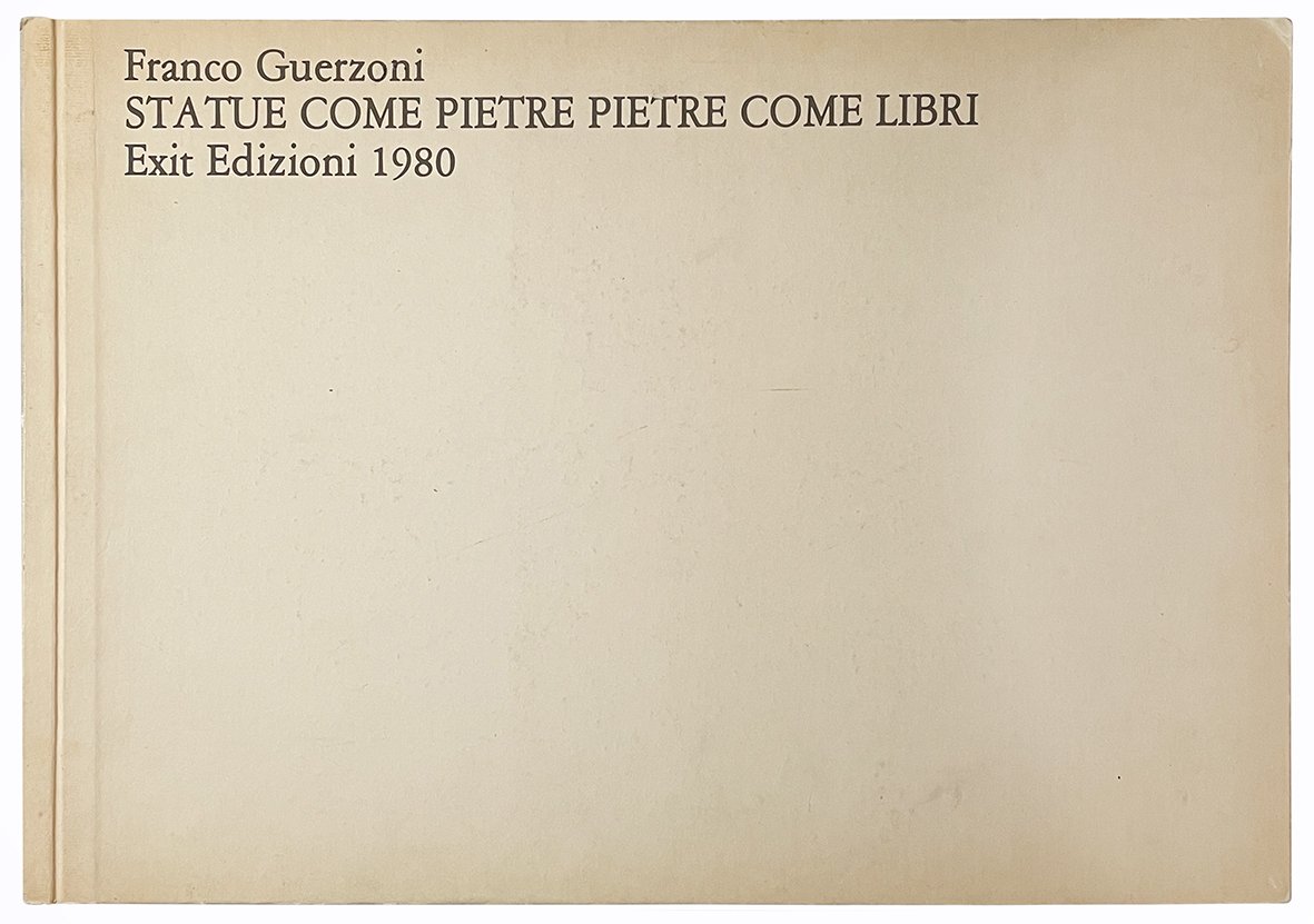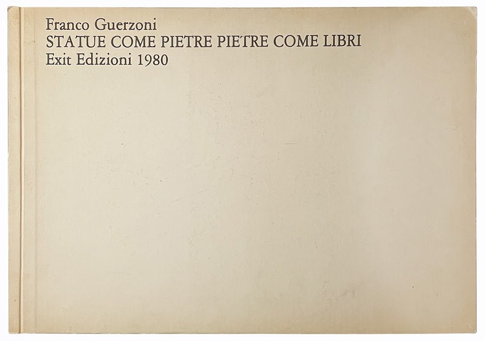 Mm. 405x280. Pp. [12]. Con tavole originali stampate in b/n riportanti disegni, dai tratti essenziali e sottili, di statue e siti immaginari che sembrano svilupparsi a partire da alcuni cocci, veri o contraffatti, posati sulla superficie. Testo di Franco Guerzoni ed Emilio Mattioli, con traduzione inglese a fronte. Brossura editoriale con titolo alla copertina anteriore, copertine stampate in fotolitografia in b/n. Edizione in tiratura limitata di 230 esemplari numerati 1-200 e I-XXX, ns copia nr. I di XXX, con firma autografa di Franco Guerzoni. Ottimo esemplare in questa rara tiratura in prima edizione edita a cura di Alvaro Becattini e impressa in Bologna dalla Grafis nell'estate 1980.