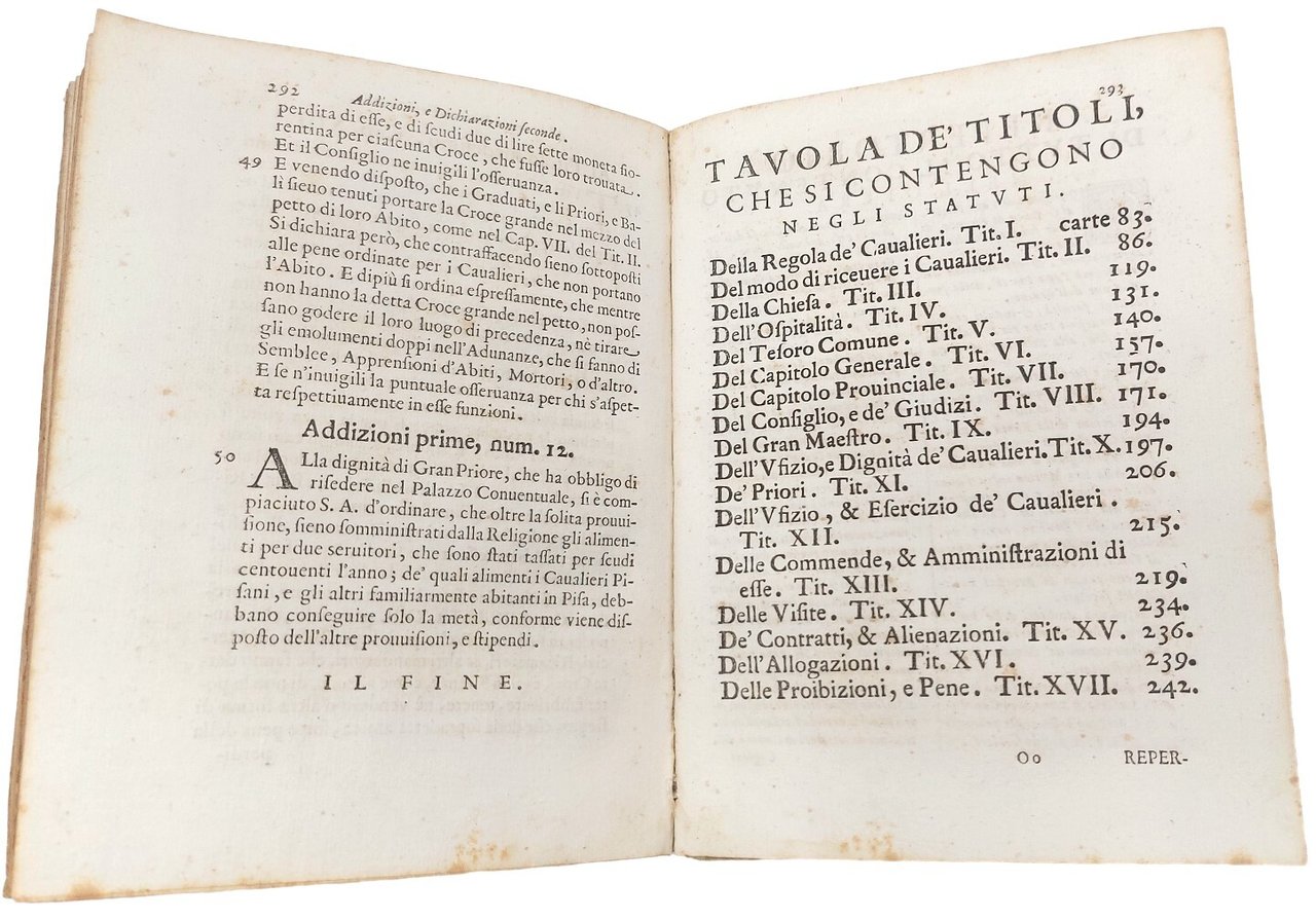 STATUTI DELL'ORDINE DE' CAVALIERI di SANTO STEFANO.
