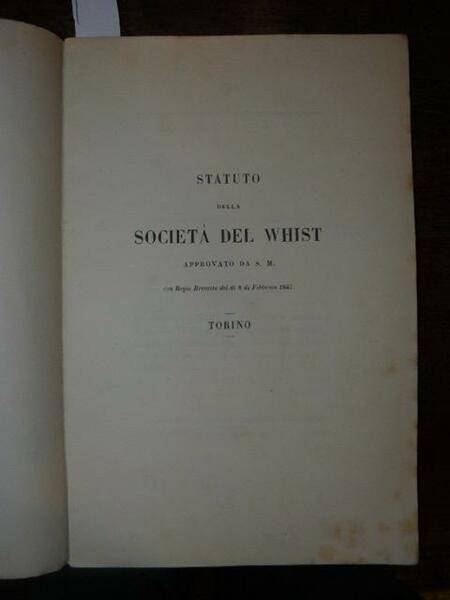 Statuto della società del Whist approvato da S. M. con regio Brevetto del dì 8 di febbraio 1847