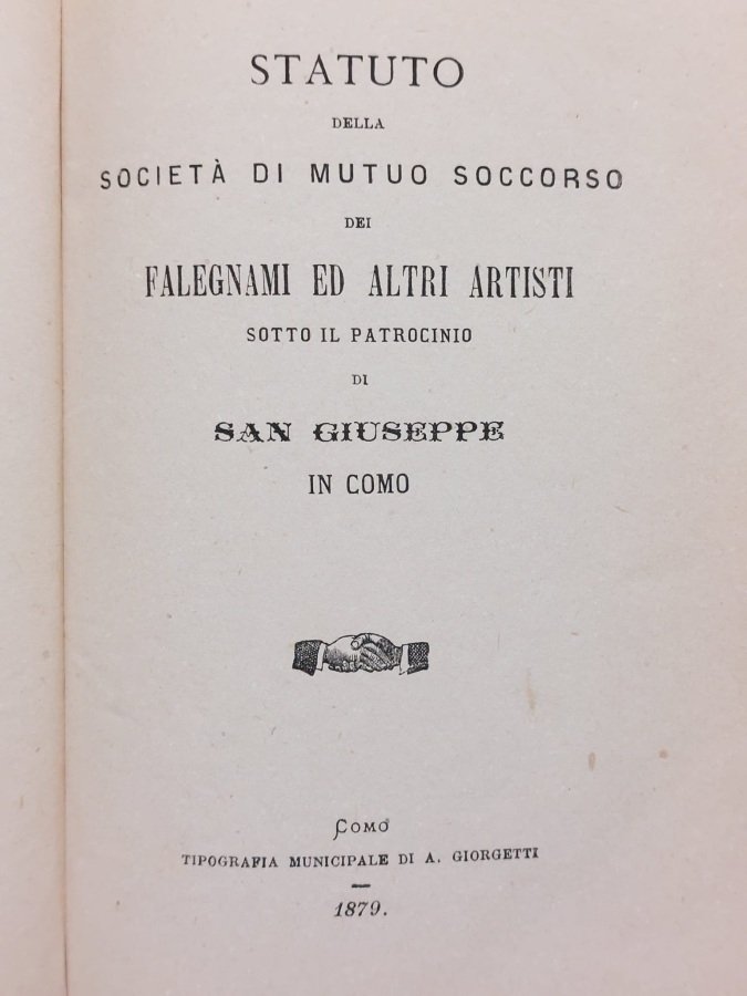 Statuto della Società di Mutuo Soccorso dei falegnami ed altri artisti sotto il patrocinio di San Giuseppe in Como.