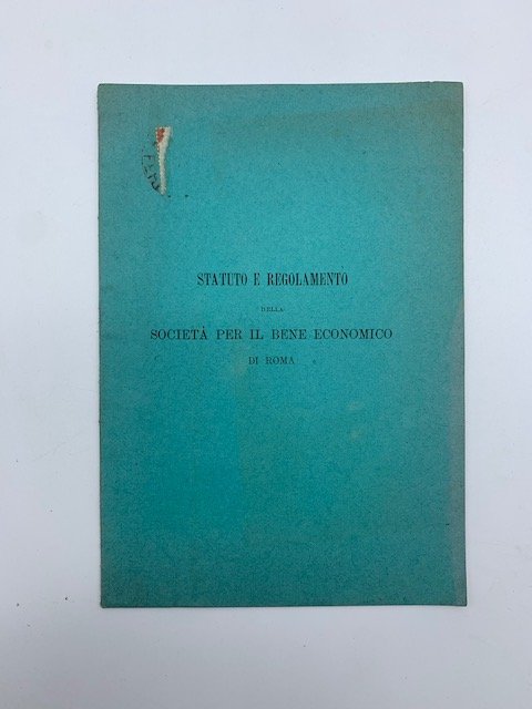 In 16 (cm 12,5 x 18), pp. 8. Brossura editoriale. Statuto di questa Societa', a forte presenza massonica, che si era costituita a Roma il 14 febbraio 1890, al Teatro Argentina, da un'assemblea piu' di cento persone. Negli anni successivi, l'Associazione svolgera' un importante ruolo nella promozione delle iniziative per solennizzare il XXV anniversario della liberazione di Roma. Guido Baccelli fu chiamato a presiedere la Societa'.