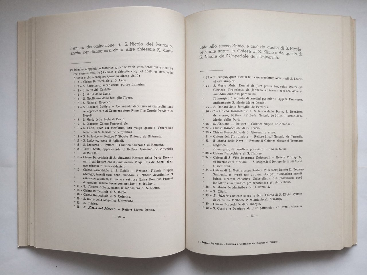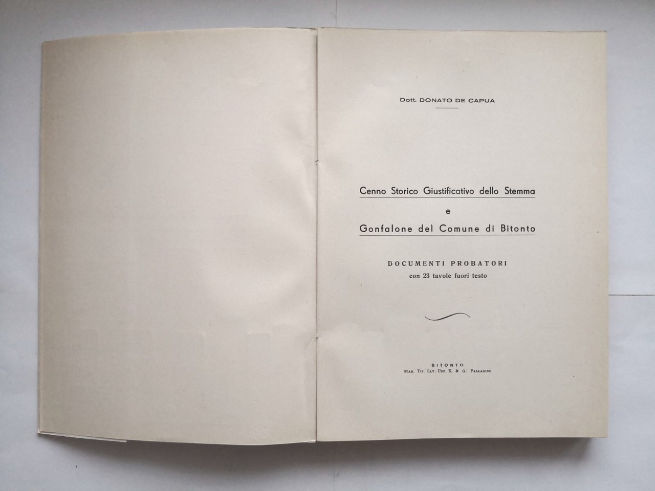 STEMMA E GONFALONE DEL COMUNE DI BITONTO di Donato De Capua 1960 Palladino Libro