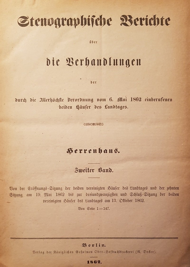 - (= Stenographische Berichte über die Verhandlungen: Herrenhaus, 1862).