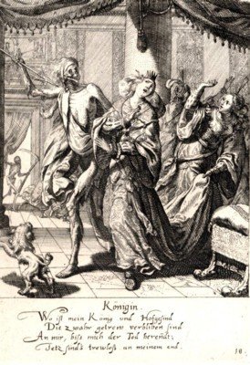 Königin. Blattgrösse 24,8 x 17,9 cm; Plattengrösse 13,7 x 9,5 cm, auf festem Papier. Massmann, S. 51. Leemann-van Elck, S 114. Faber du Faur S. 454. Lonchamp 2073. - 61 ganzs. Kupferstiche umfasst die Folge. "Dieser Totentanz ist ein Gipfelpunkt züricherischer Illustrationskunst" (Leemann-van Elck, S 115). - Radierung von der Original-Platte. - Ränder etwas unfrisch. - The indicated shipping costs refer to books weighing up to one kilogram. - Bücher, die schwerer als ein Kilogramm oder größer als 35 x 25 cm sind, werden als Paket verschickt und kosten innerhalb Deutschlands bis zu zwei Kilogramm 6 Euro, darüber hinaus 7 Euro Porto. -