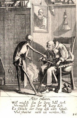 Alter Mann. Blattgrösse 24,8 x 17,9 cm; Plattengrösse 13,7 x 9,5 cm, auf festem Papier. Massmann, S. 51. Leemann-van Elck, S 114. Faber du Faur S. 454. Lonchamp 2073. - 61 ganzs. Kupferstiche umfasst die Folge. "Dieser Totentanz ist ein Gipfelpunkt züricherischer Illustrationskunst" (Leemann-van Elck, S 115). - Radierung von der Original-Platte. - Ränder etwas unfrisch. - The indicated shipping costs refer to books weighing up to one kilogram. - Bücher, die schwerer als ein Kilogramm oder größer als 35 x 25 cm sind, werden als Paket verschickt und kosten innerhalb Deutschlands bis zu zwei Kilogramm 6 Euro, darüber hinaus 7 Euro Porto. -