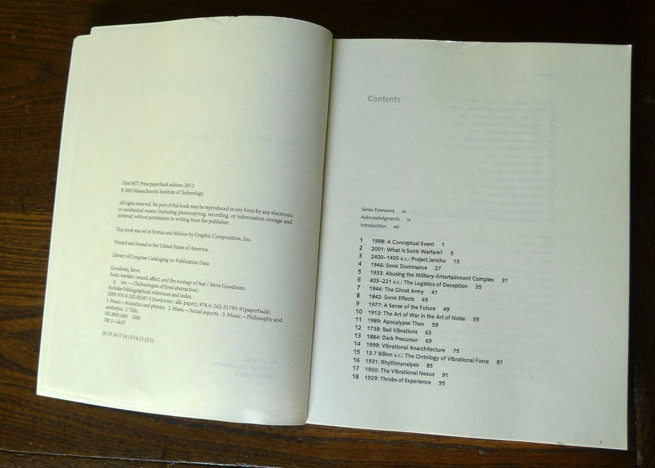 Steve Goodman,SONIC WARFARE.SOUND, AFFECT, AND THE ECOLOGY OF FEAR.The MIT Prass, Cambridge Massachusetts / London England 2012,brossura, 23x18 cm., pp.XX-270,ISBN: 978-0-262-51795-9,peso: g.500cod.9417CONDIZIONI DEL LIBRO: come nuovo
