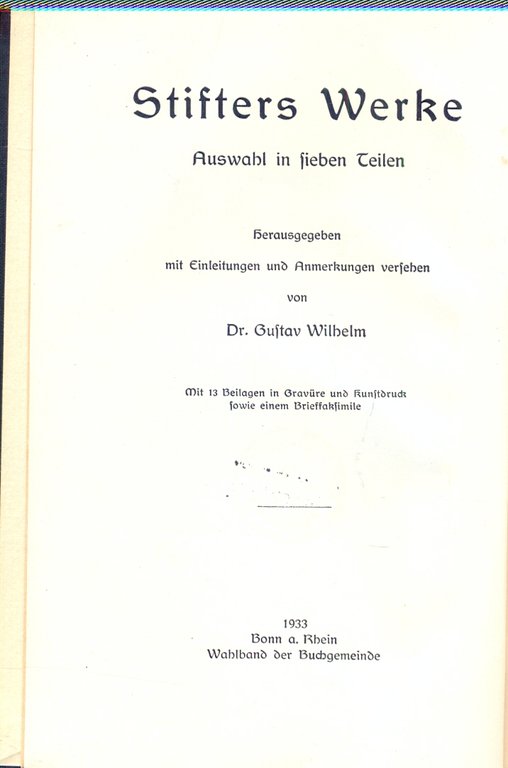 Stifters Werke. Auswahl in sieben Teilen. Hrsg. mit Einleitungen und Anmerkungen versehen.