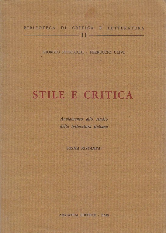 STILE E CRITICA di Petrocchi e Ulivi libro saggistica letteratura italiana